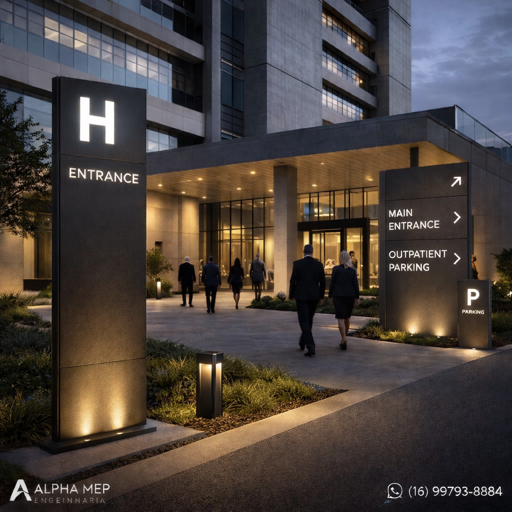 Para empreendimentos que exigem alto nível técnico, estética arquitetônica e soluções definitivas, a Alpha MEP Engenharia desenvolve sistemas completos de sinalização e iluminação arquitetônica.